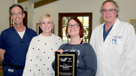 Doctors Harding, O'Neill, Forstner and Castillo posing with a beautiful plaque presented by Wings for Warriors! Dr. Castillo is honored to of been a part of the incredible 2019 OdySea Aquarium event in support of United States Veterans!